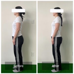 体験に来ていただいたお客様の変化です。15分程度の運動で反り腰は改善できます。